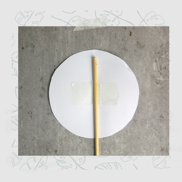Step 2: Cut carefully along the borders. Secure satay stick or disposable chopstick to the paper with tape on both sides.