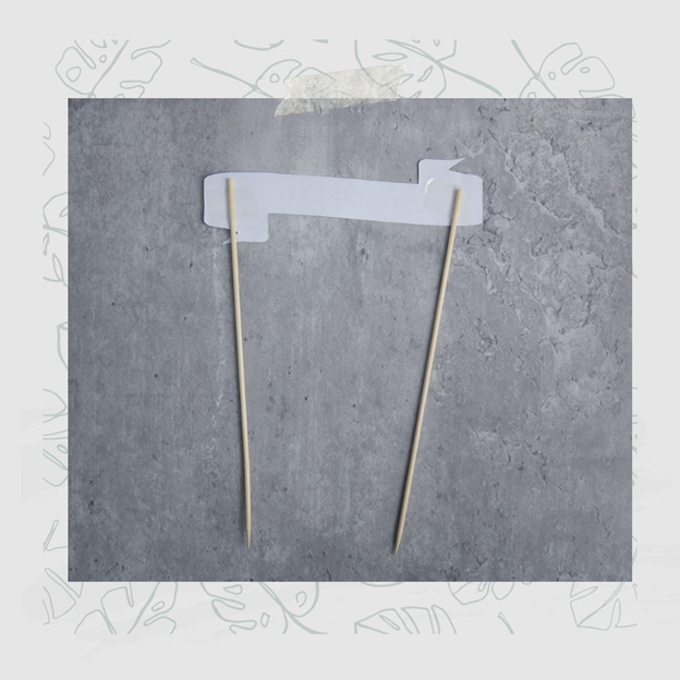Step 3: Secure satay stick or disposable chopstick to the paper with tape.