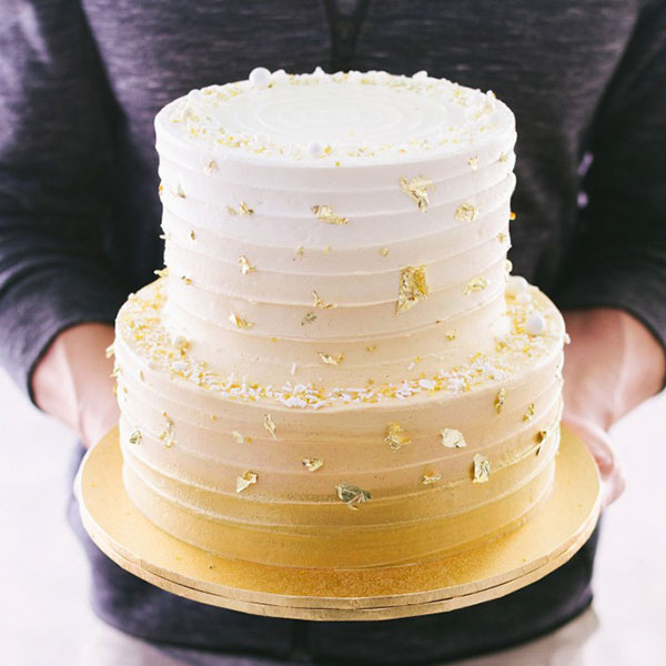 Pictured: Gold Ombre Cake with Gold Leaves - Two Tier
